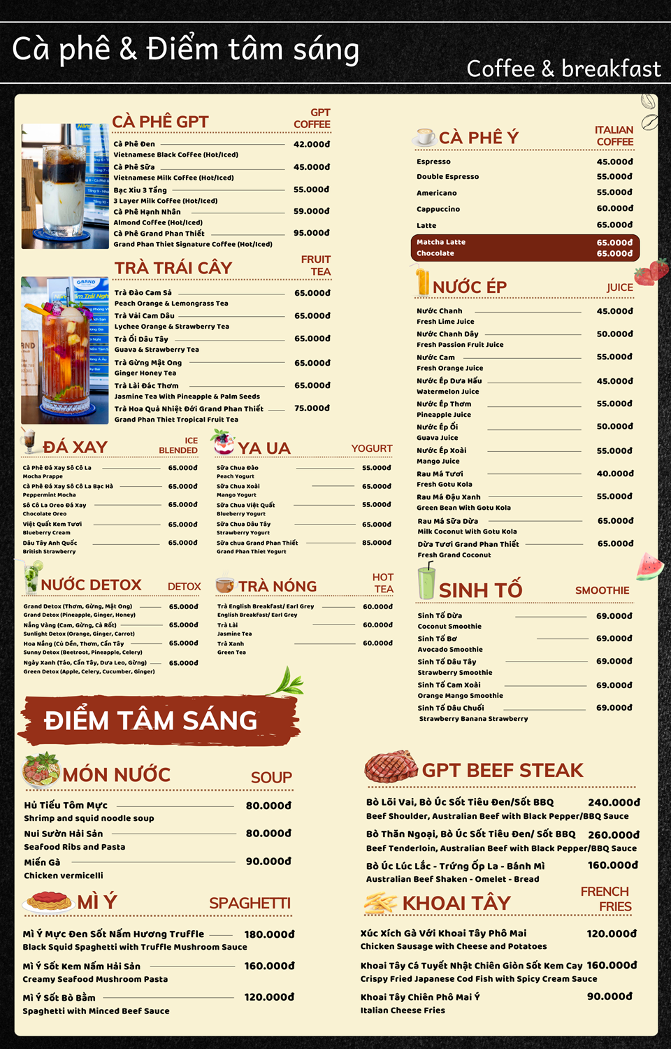 Menu Cà Phê và Điểm Tâm Sáng