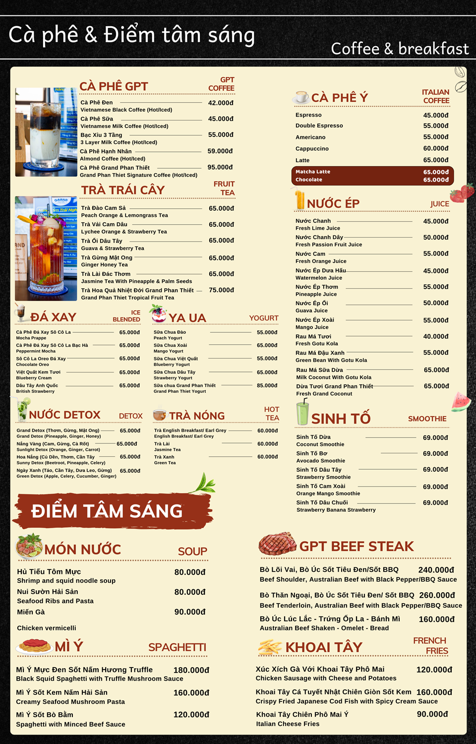 Menu Cà Phê và Điểm Tâm Sáng